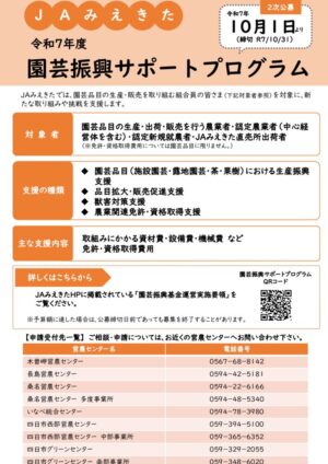 園芸振興に向けた新たな支援制度の2次公募をスタート!