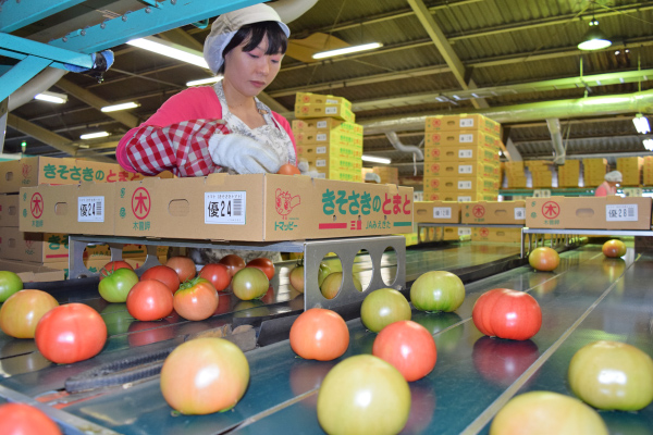 温度に加え、水分量や肥料濃度、日射量に至るまで管理されたトマトは、県内外の市場へ向けて出荷しています。