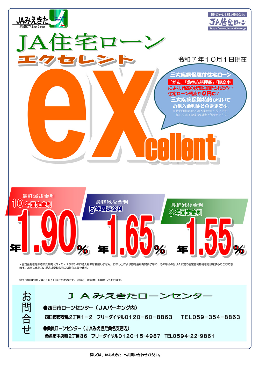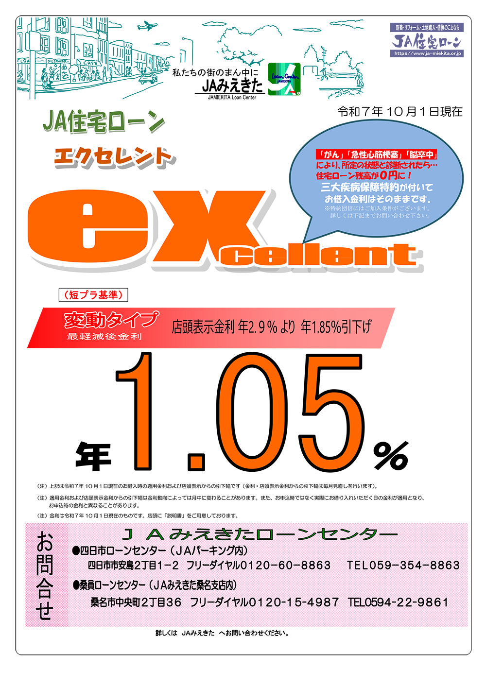 詳しいご相談は、JAみえきた各ローンセンターまでご連絡ください。住宅ローン担当の者が承ります。審査の結果、お断りする場合がございますのでご了承ください。