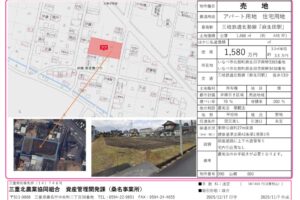 所在:三重郡朝日町大字縄生 地目:宅地 地積:323.78㎡(97.90坪) 価格:1,762万円